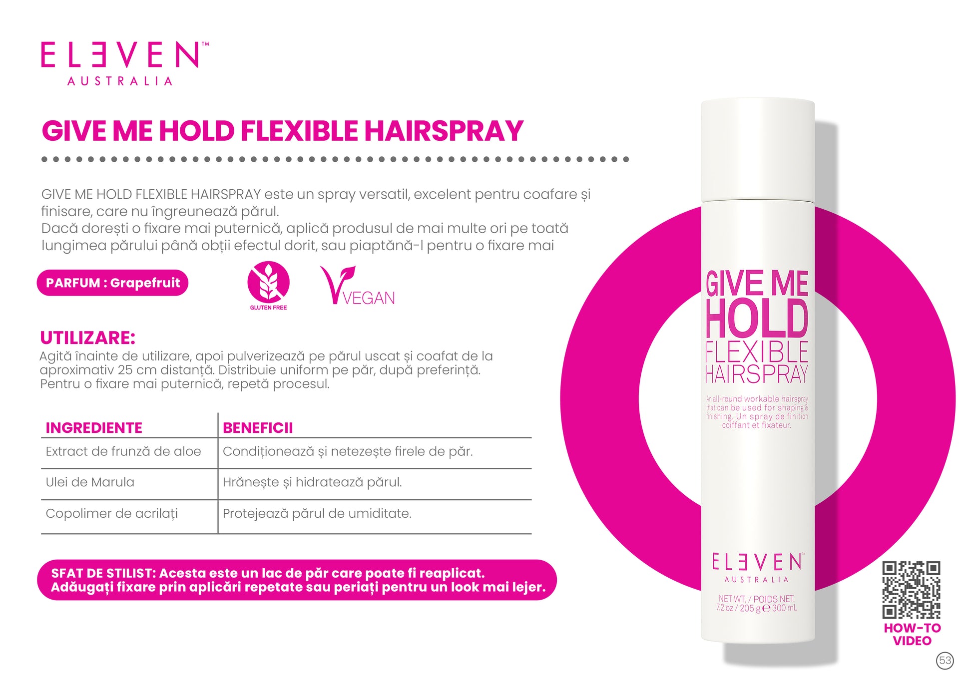 Pulverizează pe păr de la o distanță de 25 cm, după coafare.
